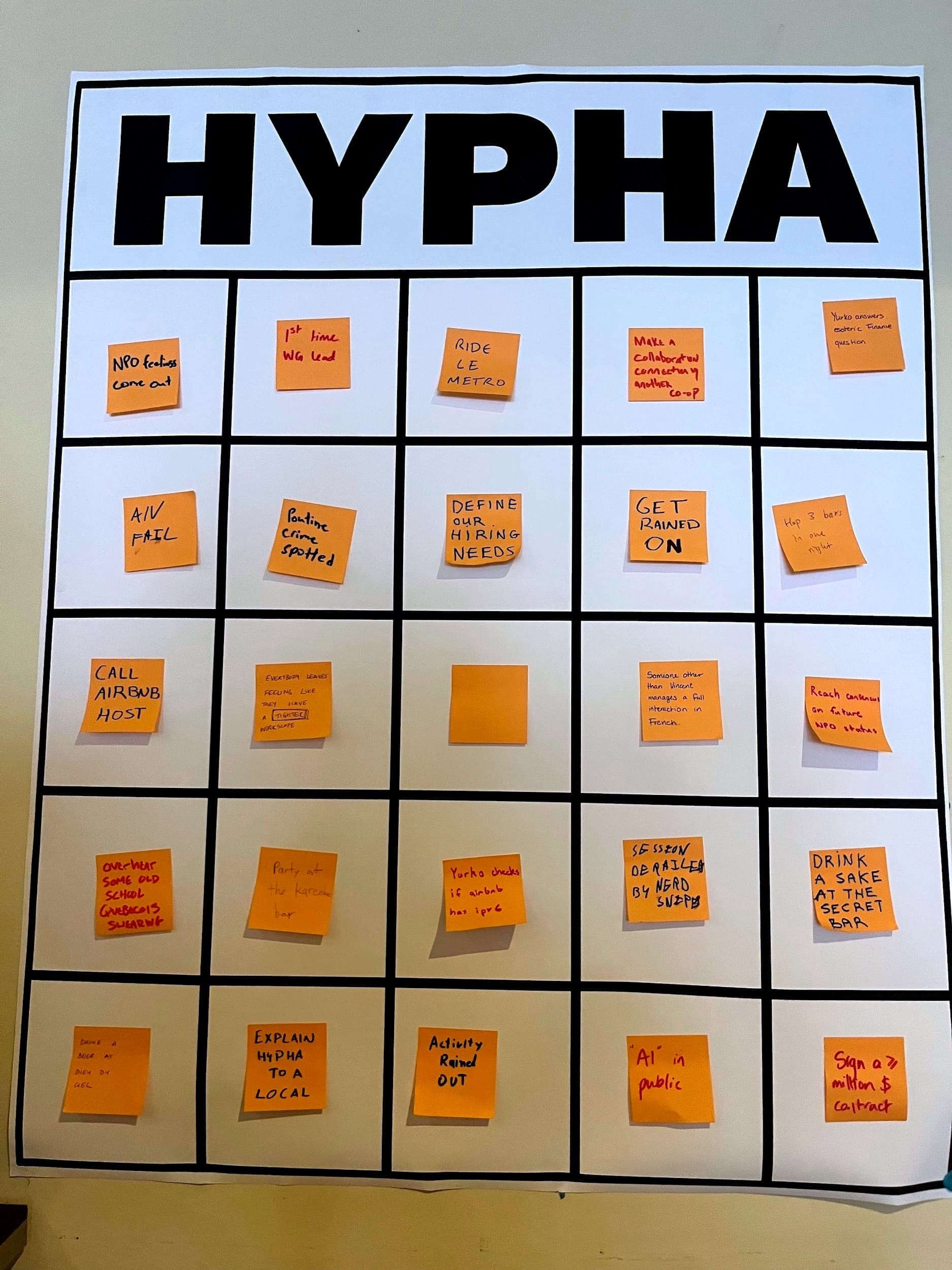 Each year, Hypha members gather in one place for a week to plan, work, and have fun. This year, our annual retreat was held in Montréal and everyone agreed it was the best yet. Impressively organized by Vincent, who calls Montréal home, the team spent five days reflecting on the challenges of the past year, celebrating our wins, and planning for what’s next. Since 2023, we’ve experimented with organizing our work and business development into Practice Areas; at the retreat, we opted to reorganize our work into three pillars: Stability, Solidarity and Growth, and have nominated members to steward these domains. We’re betting that this bold change will help Hypha continue to collaborate with our existing clients, support projects and causes we love, and most importantly, form new partnerships and win new clients.